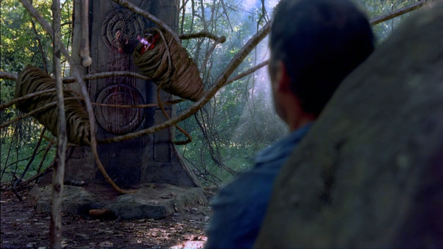 An explorer is hired to lead an expedition into the jungle in search of an ancient burial ground, where a priceless jeweled dagger is believed to be hidden. While he finds the treasure, removing it from its resting place awakens a ravenous plant monster.