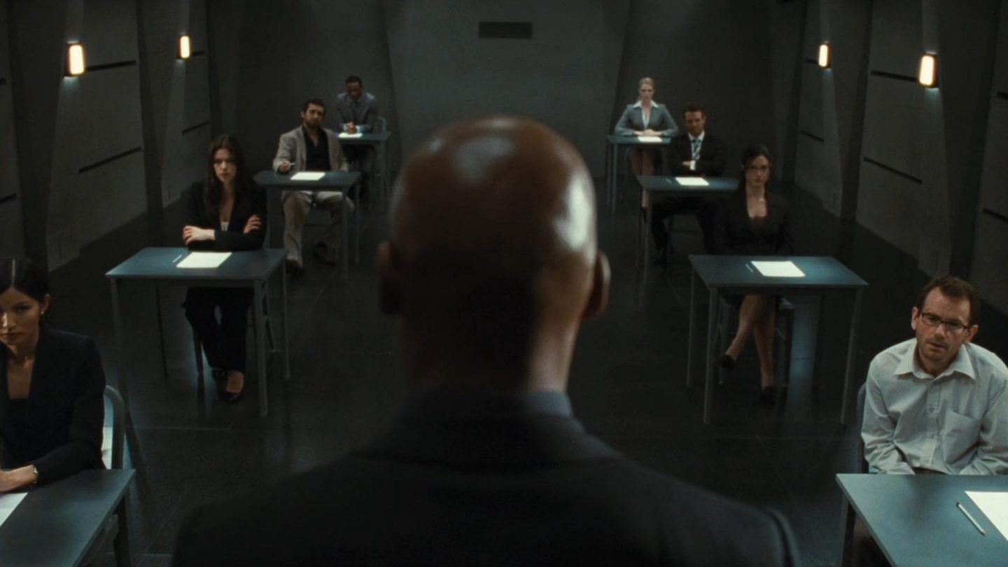 The final candidates for a highly desirable corporate job are locked together in an exam room and given a test so simple and confusing that tension begins to unravel.