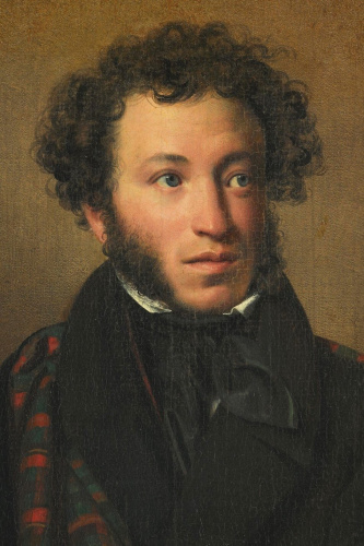 Alexander Sergeyevich Pushkin (6 June [O.S. 26 May] 1799 – 10 February [O.S. 29 January] 1837) was a Russian poet, playwright, and novelist of the Romantic era. He is considered by many to be the greatest Russian poet, as well as the founder of modern Russian literature. Pushkin was born into the Russian nobility in Moscow. His father, Sergey Lvovich Pushkin, belonged to an old noble family. One of his maternal great-grandfathers was Abram Petrovich Gannibal, a nobleman and military general of African origin who was kidnapped from his homeland by the Ottomans, then freed by the Russian Emperor and raised in the Emperor's court household as his godson. Pushkin published his first poem at the age of 15, and was widely recognized by the literary establishment by the time of his graduation from the Tsarskoye Selo Lyceum. Upon graduation from the Lyceum, Pushkin recited his controversial poem "Ode to Liberty", one of several that led to his exile by Emperor Alexander I. While under strict surveillance by the Emperor's political police and unable to publish, Pushkin wrote his most famous play, Boris Godunov. His grand opus novel in verse Eugene Onegin was serialized between 1825 and 1832. Pushkin was fatally wounded in a duel with his wife's alleged lover (her sister's husband), Georges-Charles de Heeckeren d'Anthès, also known as Dantes-Gekkern, a French officer serving with the Russian Chevalier Guard Regiment. (Via Wikipedia)
